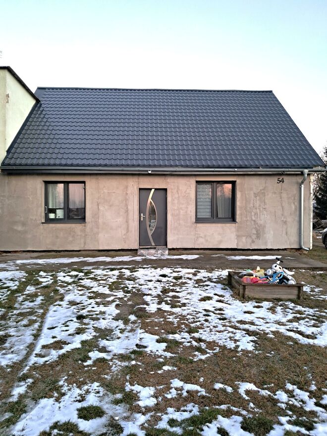 Na nieruchomości wymieniono okna na 3- szybowe, nowe drzwi wejściowe, podłoga panele, w łazience płytki, ściany- gładź gipsowa.